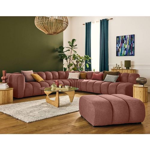Debbie - canapé modulable d'angle droit 5 places en tissu texturé - rose rose Taille unique