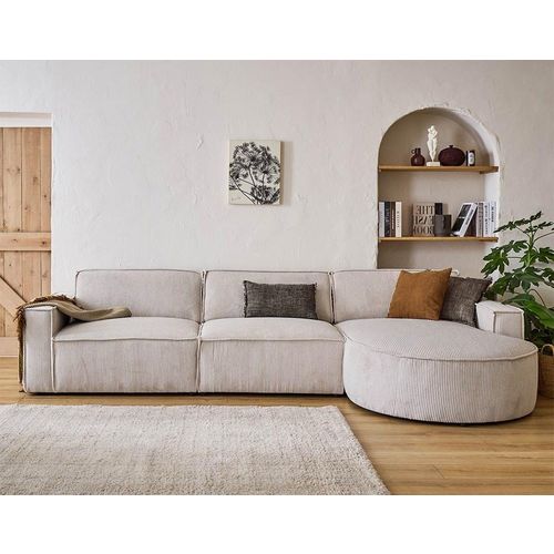 Spiaggia - canapé d'angle droit - 5 places - en velours côtelé - beige beige Taille unique