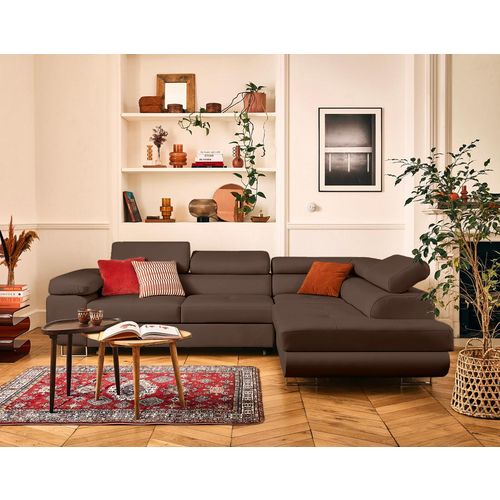 Zaria - canapé d'angle droit 5 places convertible avec coffre et têtières en simili - marron marron Taille unique