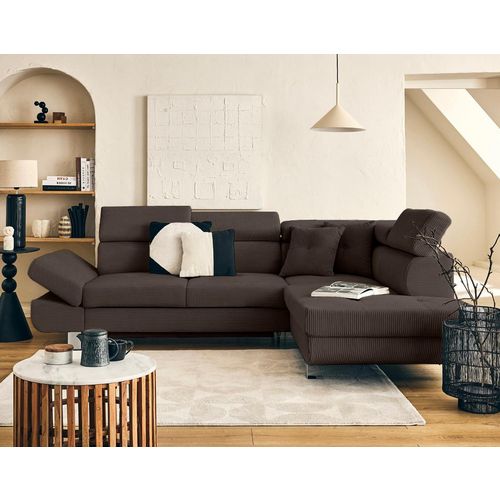 Lisbona - canapé d'angle droit 5 places convertible avec têtières en velours côtelé - marron marron Taille unique