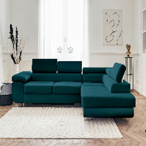 Pablo - canapé d'angle droit - 5 places - convertible avec coffre et têtières réglables - en velours - bleu canard bleu canard Taille unique