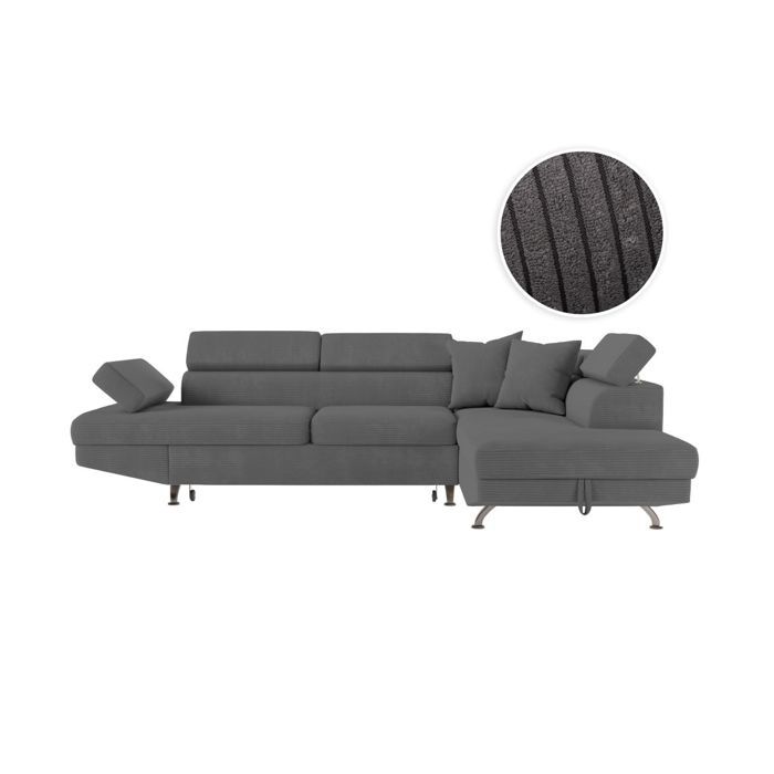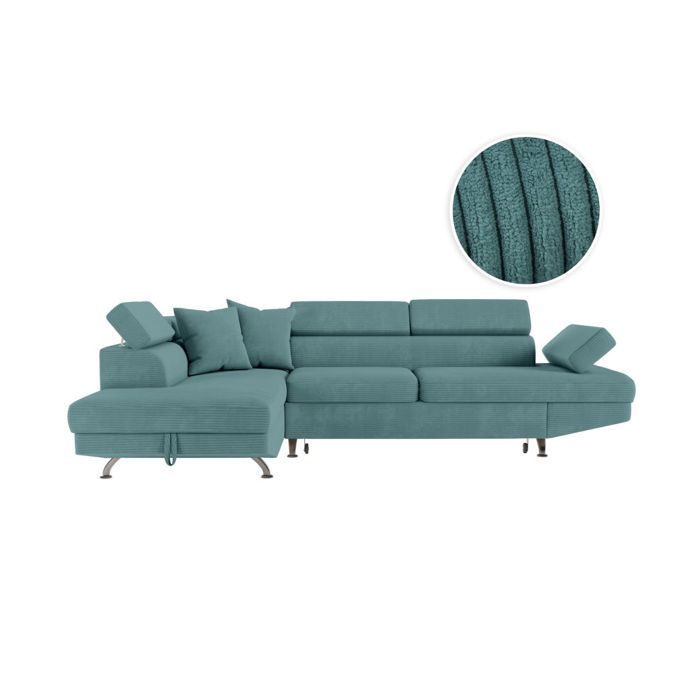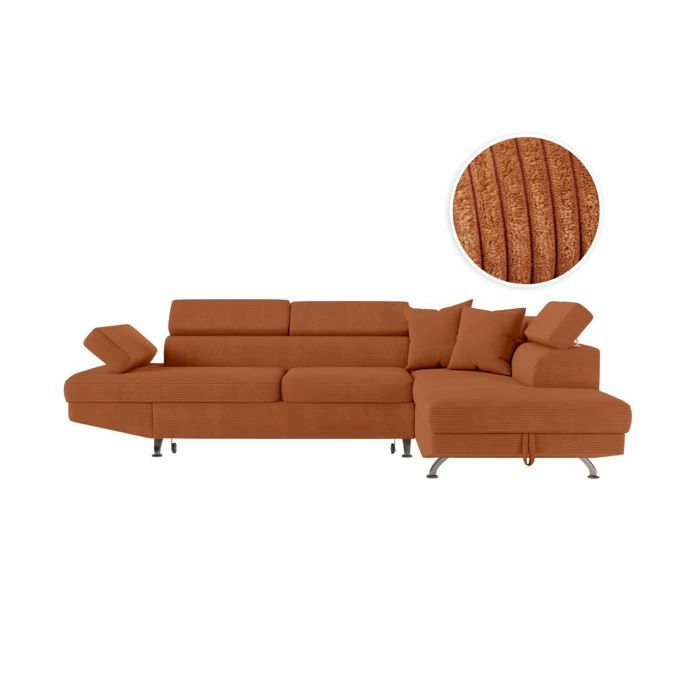 Canapé dangle droit convertible RIO 5 places avec coffre de rangement en velours côtelé - Terracotta
