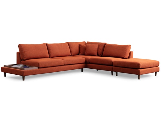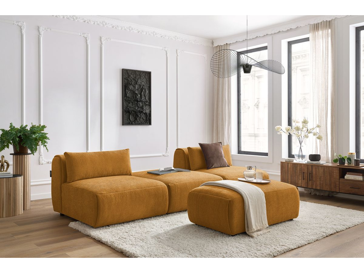 Canapé tissu Tulip angle droit avec pouf orange