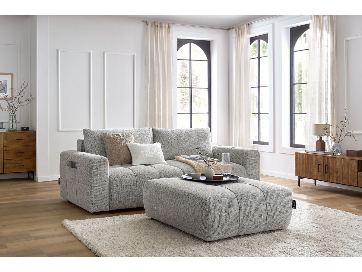 Bobochic Canapé panoramique fixe MEGEVE avec pouf tissu texturé