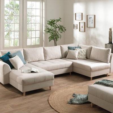 Lisa Design Rune - canapé panoramique avec pouf d'appoint 7 places style scandinave droit Beige
