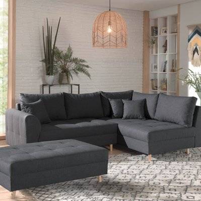 Canapé d'angle L convertible coffre ARSENE avec pouf gris foncé angle droit BOBOCHIC 4 places