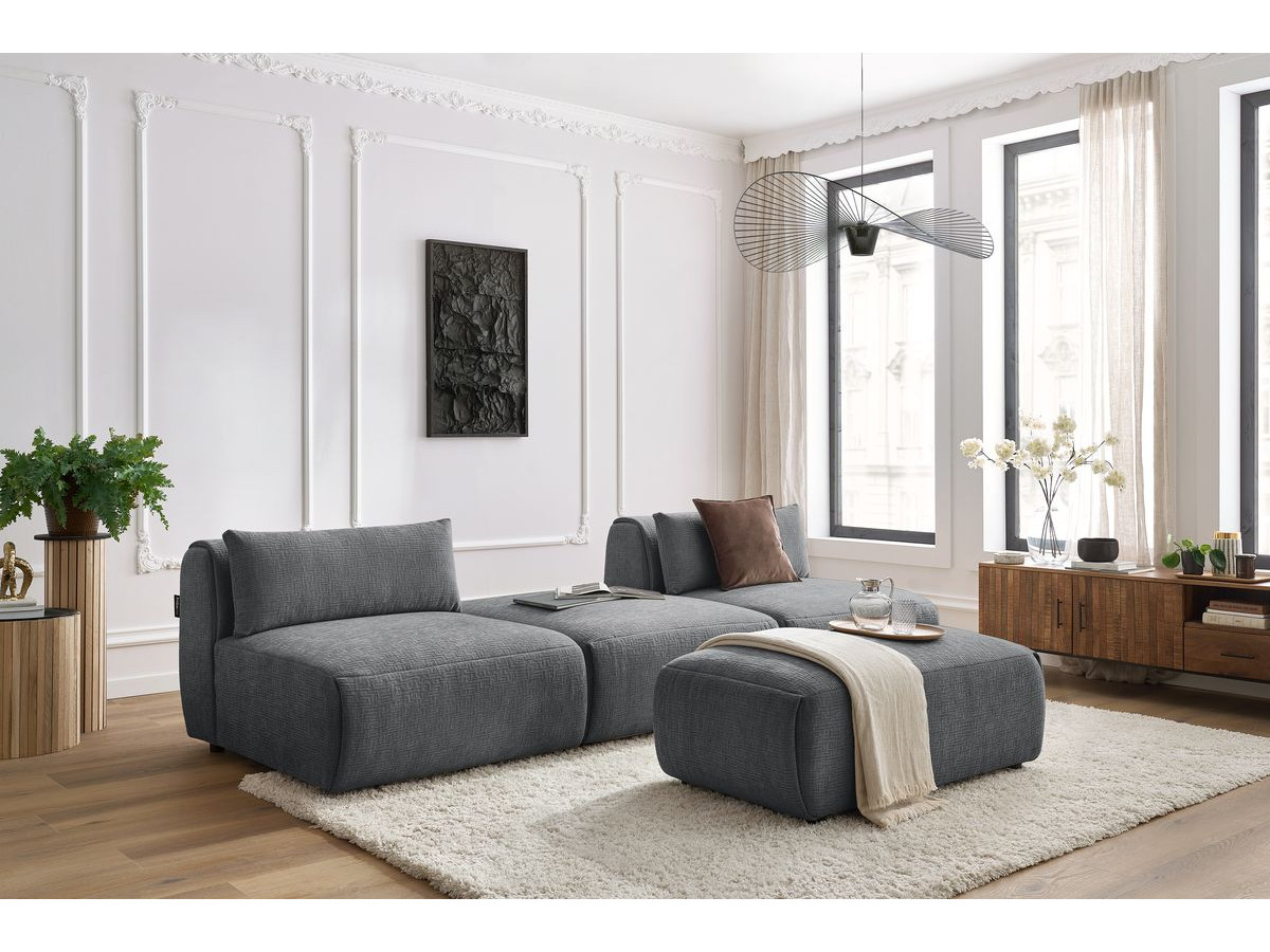 Bobochic Canapé d'angle fixe modulable MEGEVE tissu texturé avec 1 chauffeuse et pouf