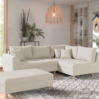 Canapé d'angle droit avec pouf champion beige
