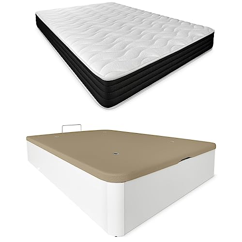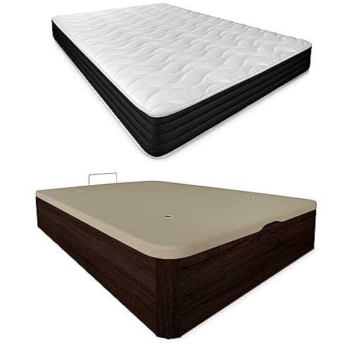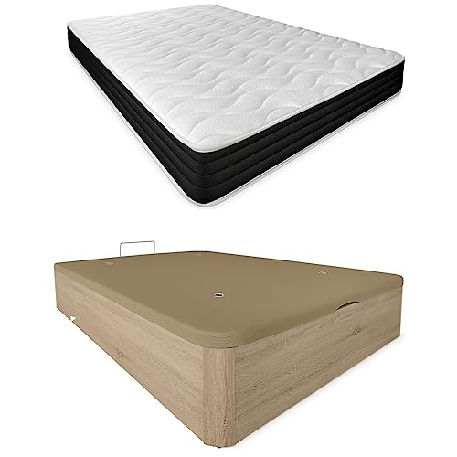 DUÉRMETE ONLINE Pack Matelas Pocket Viscoélastique réversible + canapé en Bois Rabattable Grande capacité, Polyuréthane, Cambria, 135 x 190