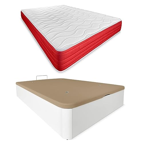 Duérmete Online Pack Matelas Viscoélastique Lite Réversible + Canapé en Bois Abattant Grande Capacité 150 x 190