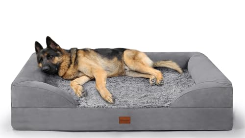Gimars Panier Chien Grande Taille L 9,5 cm Épais, Grand Canapé Chien Orthopedique avec Bordure & Matelas 28D en Mousse Cratère, Doublure Imperméable, Housse Lavable