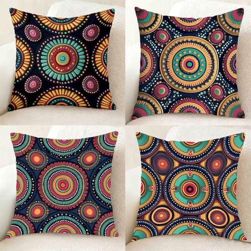 Coloré Coussin Canape Lot de 4, Imperméable Housse Coussin Rond Taie Oreiller 55 X 55 cm, Carré Lin taie d'oreiller avec Fermeture Eclair Caché pour Decoration Jardin Exterieur, Cadeau -bby2501188