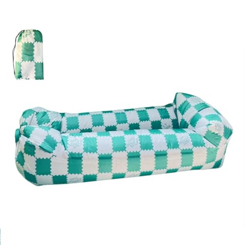Hixingo Canapé Gonflable, Extérieur Fauteuil Gonflable, Imperméable à l'eau Hamac Gonflable, Lit d'air de Sofa Gonflable de Fainéant Paresseux pour Piscines (185x75x55cm,Plaid Vert)