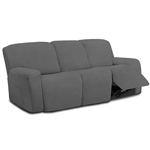 Easy-Going Lot de 8 Housses de canapé 3 Places en Microfibre Extensible, Douce et ajustée, Housse de Protection Lavable avec élasticité pour Enfants, Animaux domestiques (canapé inclinable, Gris