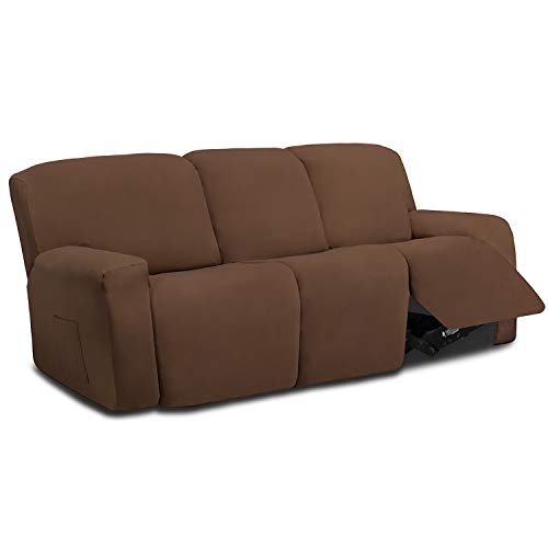 Easy-Going Lot de 8 Housses de canapé 3 Places en Microfibre Extensible, Douce et ajustée, Housse de Protection Lavable avec élasticité pour Enfants, Animaux domestiques (canapé inclinable, Marron)