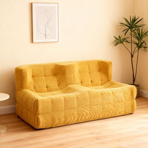 Canapé Convertible 2 Places Canapé Lit Modulable en Mousse Haute Densité et Design Innovant Boneless Couch, Expédié Compressé,Jaune,150x50x64cm