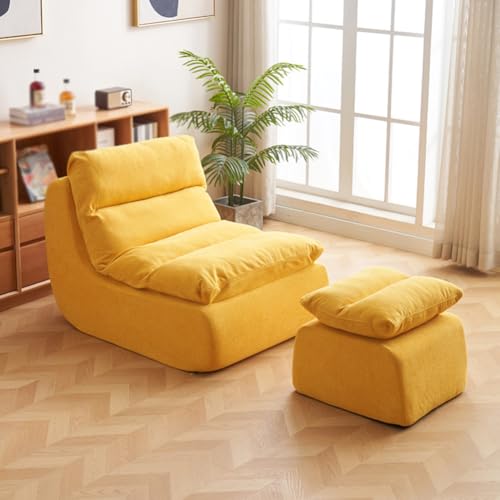 Fauteuil confortable jaune avec repose-pieds, housse amovible, petit canapé-lit modulaire pour salon, chambre à coucher, bureau, canapé de sol, design polyvalent et élégant