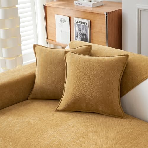 Topfinel Housse Coussin 40x40 Jaune Moutarde en Chenille Doux Decorative Canapé Salon Scandinave Lot de 2 Housse de Coussin Carré Fauteuil de Bureau Design Chambre Moderne Double Face à Motif Uni