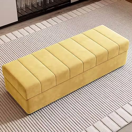Banc de rangement moderne - Banc d'entrée en bois élégant design de luxe pour extrémité de chambre à coucher, petit canapé, solution d'organisation de la maison (couleur : jaune clair, taille : 140 cm