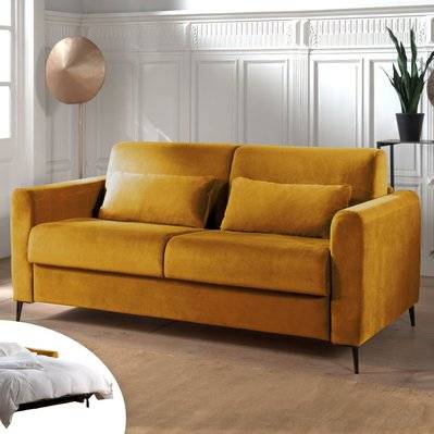 Lisa Design Owen - canapé 3 places convertible couchage quotidien matelas 12 cm en velours Jaune