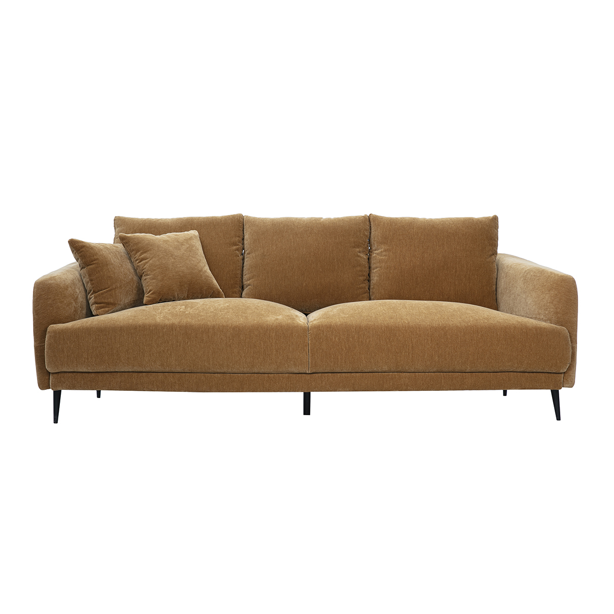 Canapé design 3 places en tissu effet velours jaune curry et métal noir JERRY
