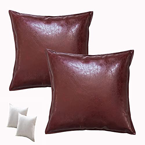KYJSW Lot de 2 housses de coussin carrées et rectangulaires en cuir synthétique pour canapé, lit, voiture (rouge, 50 x 50 cm)