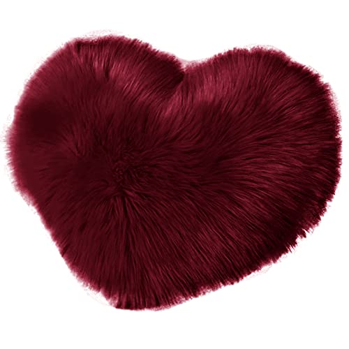 Somerway Coeur Moelleux oreillers Fausse Fourrure Amour Coeur Coussins décoratifs en Peluche Oreiller Lombaire Dos canapé Coussin pour Chambre canapé lit décor Vin Rouge