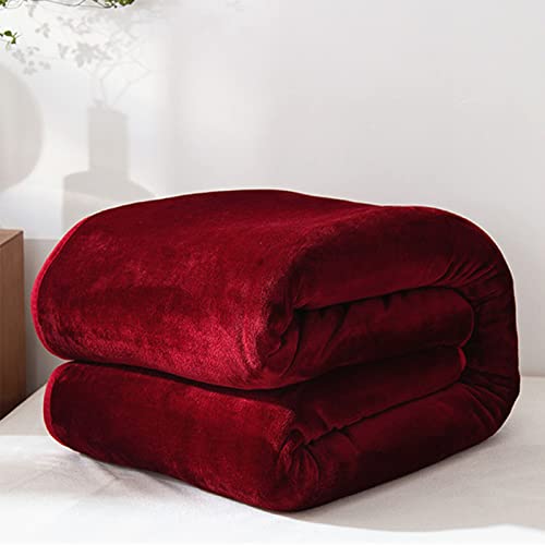 Chickwin Plaid Polaire Chaude Couverture en Flanelle, Couleur Unie Couvre lit 1/2 Personnes Jeté de Canapé Douce et Chaude Moelleuse Dessus de lit Canapé lit (Vin Rouge,100x120cm)