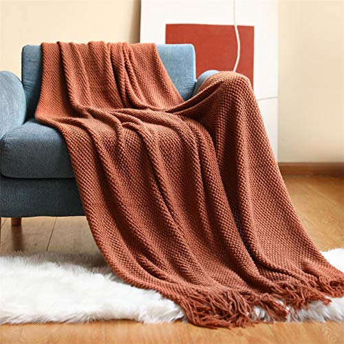 OliveSleep Couverture en tricot douce et confortable pour canapé, chaise, canapé, lit, couverture décorative, (rouge rouille, 130 x 200 cm)