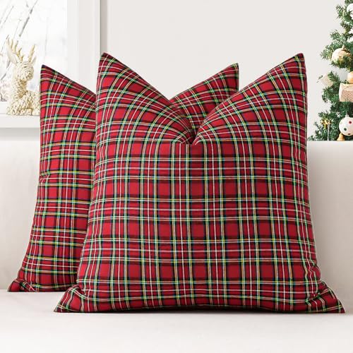 JOTOM Lot de 2 Housses de Coussin 50x50 cm de Noël en écossais Housses de Coussin Plaid Classique Farmhouse Taie d'oreiller Décoratifs pour Canapé, Salon et Lit(Rouge)