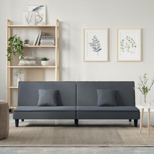 vidaXL Canapé-lit 2 places avec deux coussins gris foncé velours