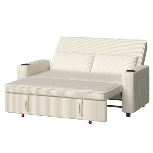 Xbro Canapé-lit, 147 x 196 x 87 cm, extensible, 2 places, avec fonction de sommeil, canapé-lit moderne, en velours beige