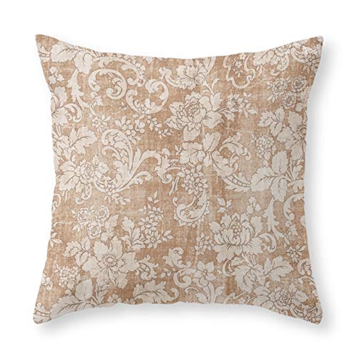 Imprimés Throw Housse De Coussin Vintage Blanc Marron Grunge Shabby Fleuri Taies d'oreiller Carré Couverture De Coussin pour Canapé D'Extérieur Voiture 45X45Cm
