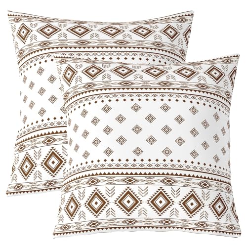 Lot de 2 Housses de Coussin décoratives Vintage en Coton et Lin avec Motif Floral Marron et Blanc, 45,7 x 45,7 cm, pour terrasse, canapé, Chambre à Coucher, intérieur et extérieur, fête
