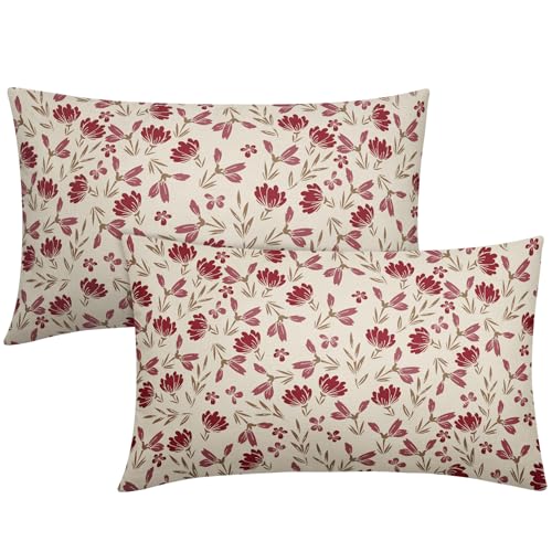 Aytipun Lot de 2 housses de coussin rectangulaires vintage rustiques à imprimé floral avec petites fleurs mignonnes, pour extérieur, canapé, sofa et lit, 30,5 x 50,8 cm, marron rouge