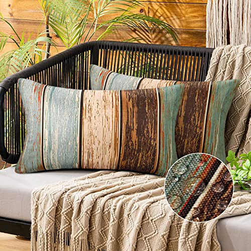 Housse de Coussin 30x50 Housses de Coussin Moderne Housse Coussin Canape Taie d'oreiller Bleu Vert Marron Rayures Bois Vintage Rustique Housses Coussins Canapé Maison Décor Protecteurs Lot de 2