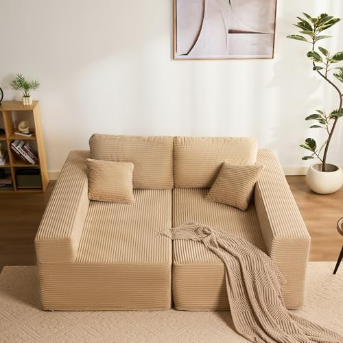 Litbird 272 cm Canapé d'angle en Forme de L avec Fonction Couchage - Canapé modulaire avec méridienne Gauche - Assise Extra Profonde - Canapé-lit pour Salon (Camel, Méridienne Droite)