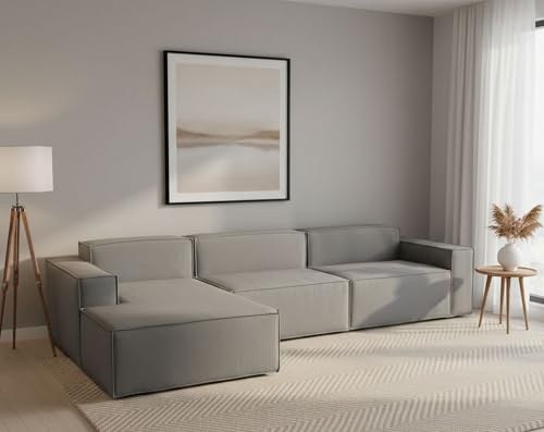 Litbird 272 cm Canapé d'angle en Forme de L avec Fonction Couchage - Canapé modulaire avec méridienne Gauche - Assise Extra Profonde - Canapé-lit pour Salon (Gris, Méridienne Gauche)