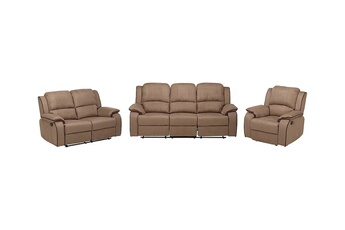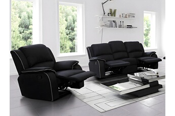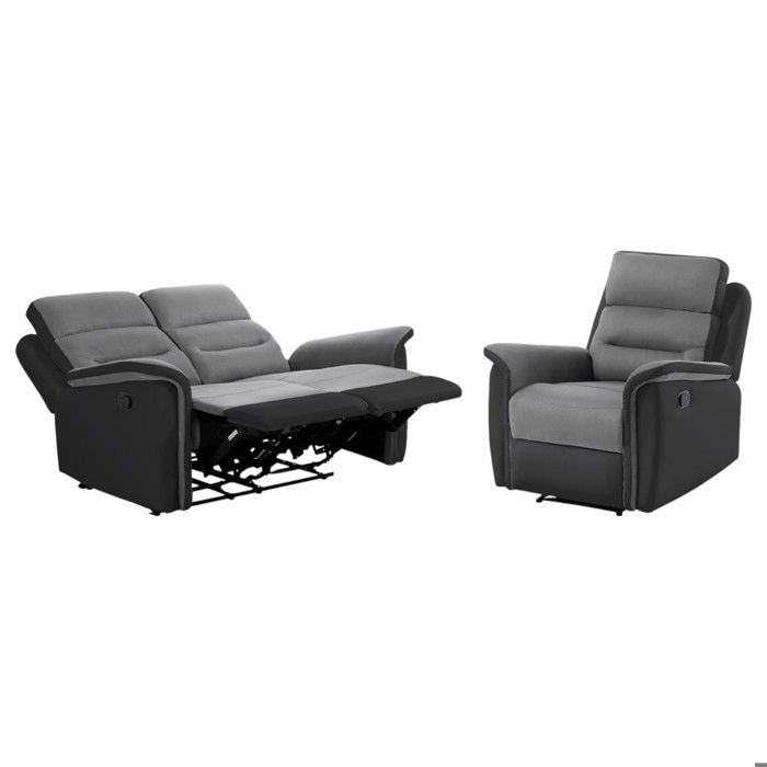 Ensemble canapé relax LÉON 2 places + fauteuil manuel en microfibre et simili Gris/Noir - LOUNGITUDE