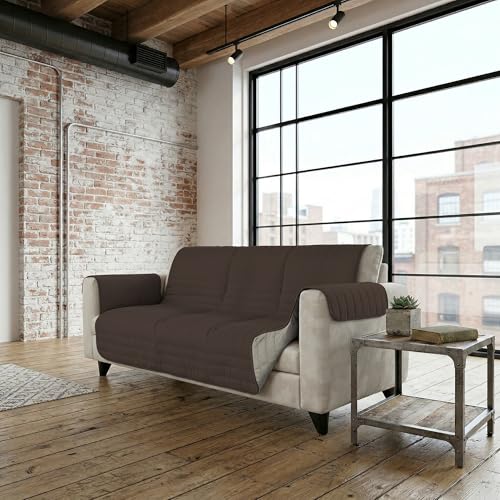 Italian Bed Linen Housse de canapé Bicolore en Microfibre Trendy, Marron/Crème, 3 Places