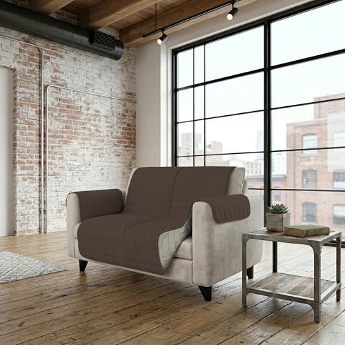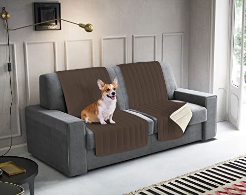 Italian Bed Linen Housse de canapé Bicolore en Microfibre Trendy, Marron/Crème, 2 Places