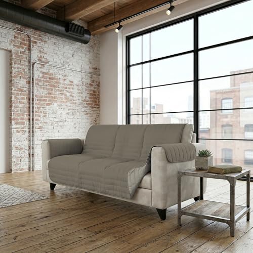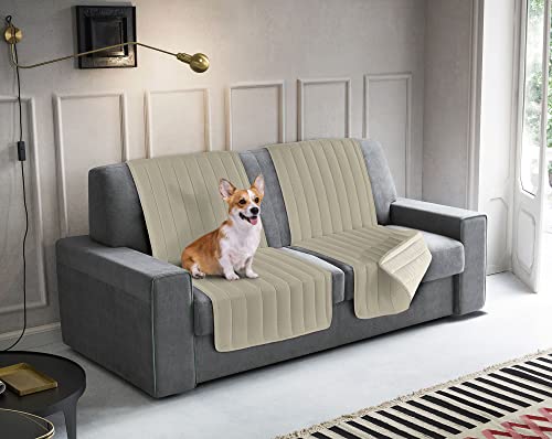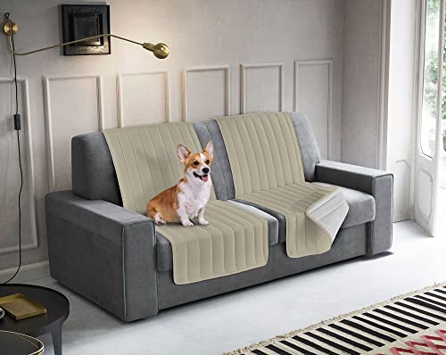 Italian Bed Linen Housse de canapé Bicolore en Microfibre Trendy, Taupe/Crème, 3 Places