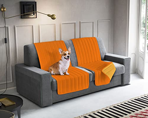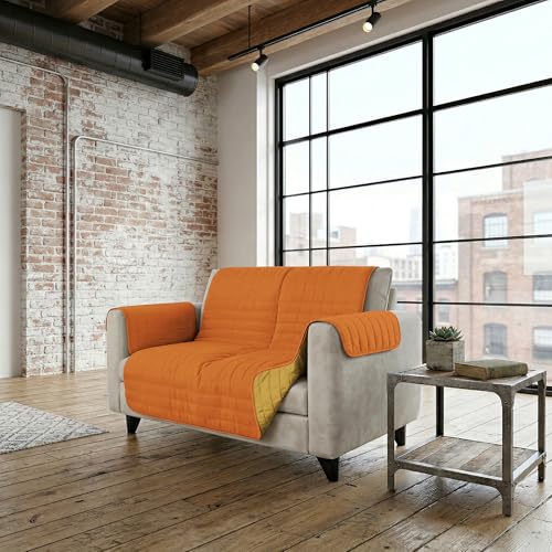 Italian Bed Linen Housse de canapé Bicolore en Microfibre Trendy, Orange/Jaune, 2 Places
