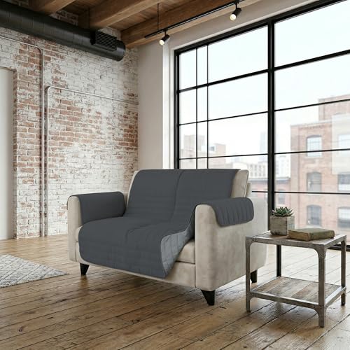 Easy-Going Lot de 2 Housses de canapé Extensibles en Microfibre – Spandex Doux et ajusté, Lavable Protection de Meubles avec élastique en Bas pour Enfants, Animaux domestiques (Causeuse, Gris foncé)