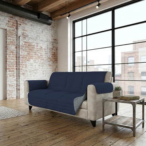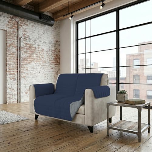 Italian Bed Linen Housse de canapé Bicolore en Microfibre Trendy, Bleu foncé/Gris Clair, 2 Places
