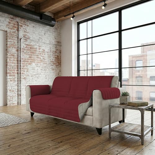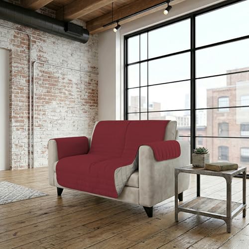 Italian Bed Linen Housse de canapé Bicolore en Microfibre Trendy, Bordeaux/Crème, 2 Places