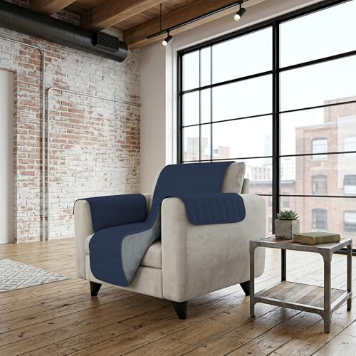 Italian Bed Linen Elegant Housse de canapé en Microfibre, Bleu foncé/Gris Clair, 60 x 190 cm