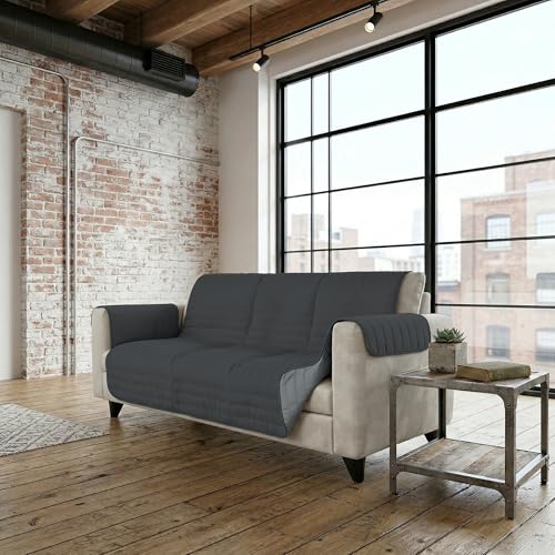 Italian Bed Linen Housse de canapé Bicolore en Microfibre Trendy, Gris Clair/Gris foncé, 3 Places