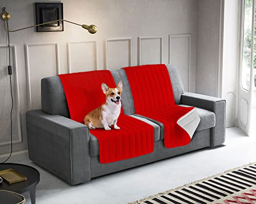 Douceur d'Intérieur 1605240 Protège Canapé Matelasse Microfibre Uni Club Rouge 279 x 179 cm