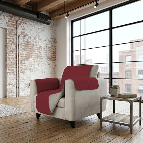 Italian Bed Linen Elegant Housse de canapé en Microfibre, Rouge/Gris Clair, 60 x 190 cm